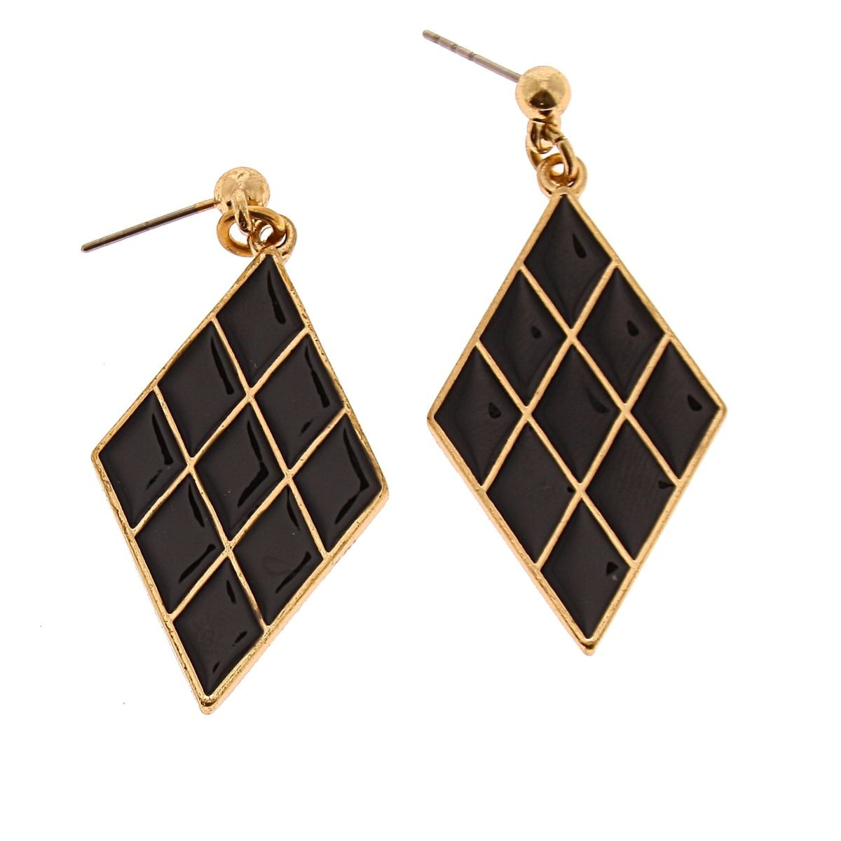 Boucle d'oreille pendante audacieuse avec un motif géométrique noir. Parfait pour une tenue formelle ou une tenue quotidienne.