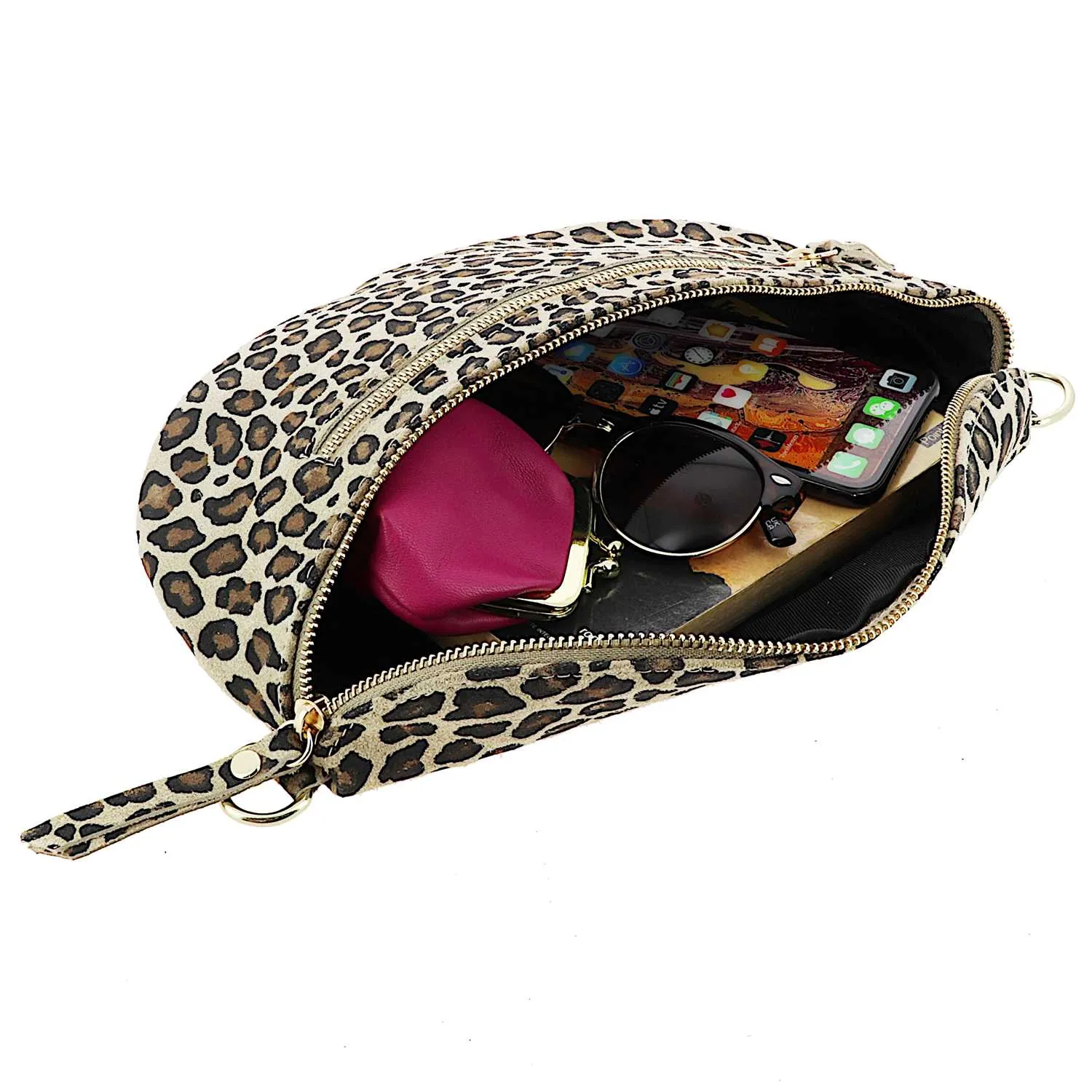Le sac banane ADRIA pour femme associe style affirmé et praticité. Confectionné en cuir de vachette suédé, ce modèle compact se distingue par son imprimé léopard tendance et sa fabrication artisanale italienne.